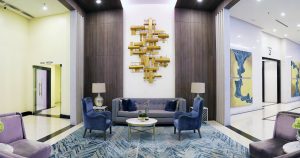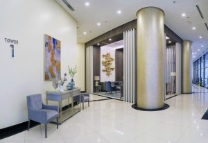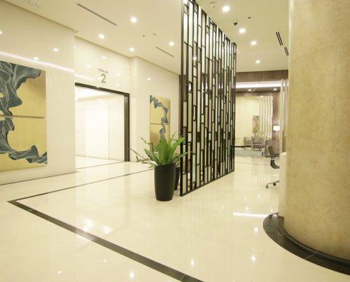 - Centralized residential lobby with reception and individual lounge area for each tower