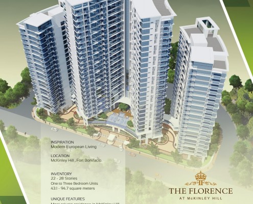 The Florence, McKinley Hill Fort Bonifacio BGC, The first only serene Italian garden-inspired residential community in Fort Bonifacio,The Florence is located in the heart of Megaworld’s 50-hectare McKinley Hill township. Imagine the middle of central business district having an exclusive enclave with a beautiful backdrop of lush greenery and thick foliage of trees and plants bursting with different colors reminiscent of the Renaissance era of the Tuscan region in Italy. Known to be Megaworld’s largest township in Metro Manila, McKinley Hill is a place where everything is inspired by the lights, sounds, and taste of Italy. It is home to Emperador Stadium, the country’s first world-class football field, and the famous Venice Piazza inspired by Venice’s Piazza di San Marco. The newest residential gated garden community has achieved the perfect dwelling place for relaxation and tranquility. Upon entry, the three-tower curvilinear design condominium creates a modern distinction of an upscale living but exudes a relaxing ambience brought about by the green surroundings. Its centralized residential lobby also creates a unique ambience with its modern contemporary design. Each tower will have one- to two-bedroom units consisting of lavish 43 to 79 square meters of space. All units will come pre-furnished with a balcony that overlooks the picturesque scenery of Makati CBD, Bonifacio Global City, and beautiful garden landscape below. Truly, The Florence is bringing a fresh perspective of a gated garden community the first and only residential concept of its kind in McKinley Hill.